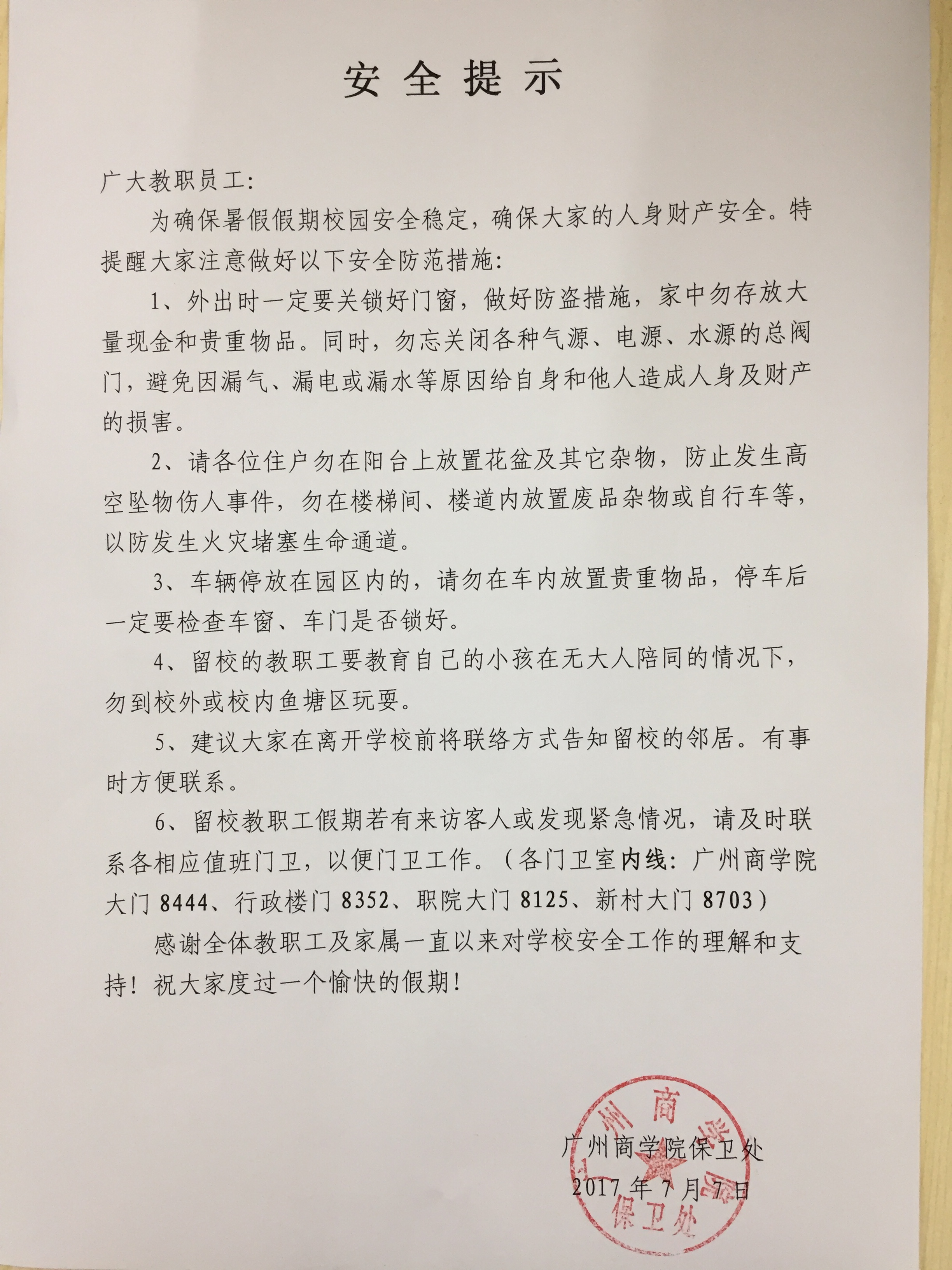 暑假安全提示